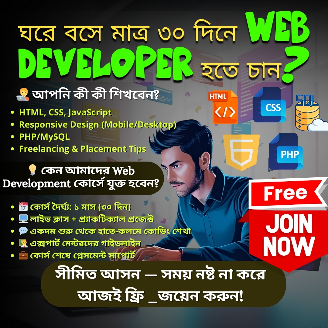 ā§Šā§Ļ āĻĻāĻŋāύā§āϰ āĻĢā§āϞ-āĻĒā§āϰā§āϝāĻžāĻāĻāĻŋāĻā§āϝāĻžāϞ Web Development Course